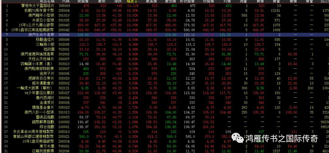 香港数码综合指数暴涨3.64%,收于505.77,成交额放大为1400万,综合指数量价起飞,今日朱系和吉系联手做多,其中涨停品种达二十个,两个票证联袂涨停。朱系继续延续昨日上涨势头,十一只茅台有八个茅台涨停,只有2012飞天茅台大市值绿盘整理中;其中羊年茅台量小市值较低,是不错的标的,2011飞天茅台和虎年茅台流动市值低于500万;从封板量来看羊年茅台和2011飞天茅台更受欢迎,朱系在数码的茅台是重中之重,2023年茅台也将继续爆发新的行情!