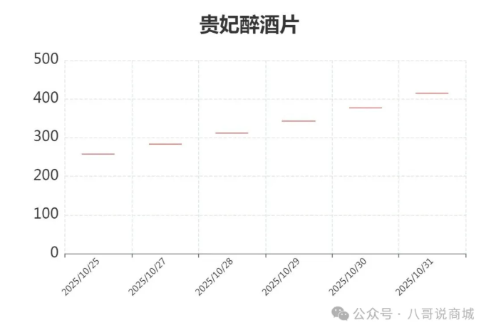 贵妃醉酒片 涨幅 10% 开盘价414.55元 收盘价414.55元 量少精品