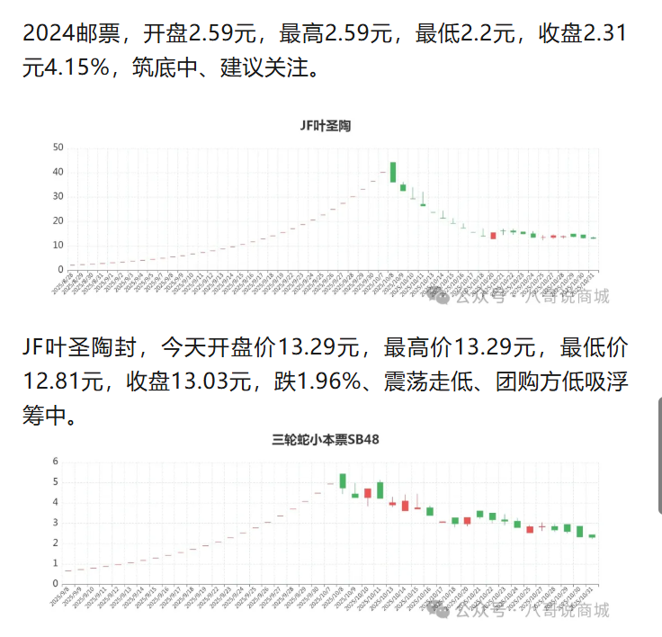 2024邮票,开盘2.59元,最高2.59元,最低2.2元,收盘2.31元4.15%,筑底中、建议关注。