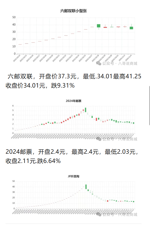 2024邮票,开盘2.4元,最高2.4元,最低2.03元,收盘2.11元.跌6.64%