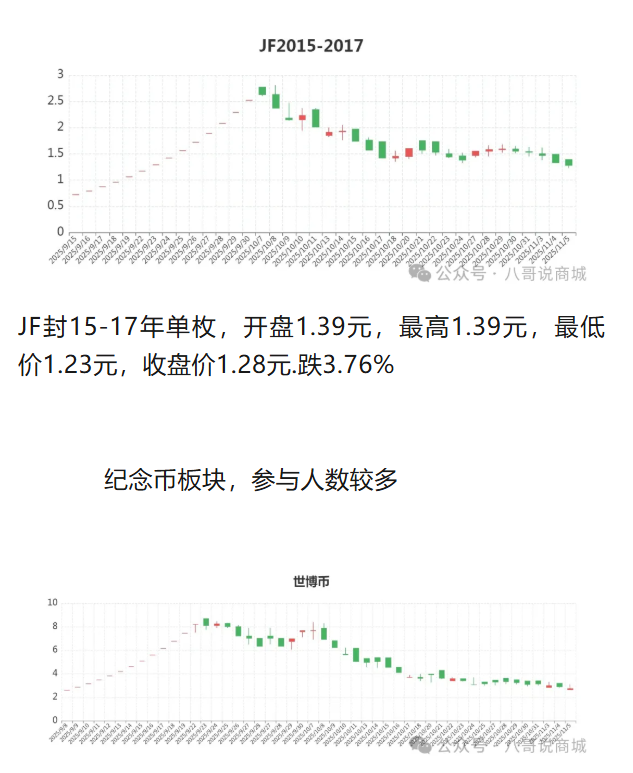 JF封15-17年单枚,开盘1.39元,最高1.39元,最低价1.23元,收盘价1.28元.跌3.76%