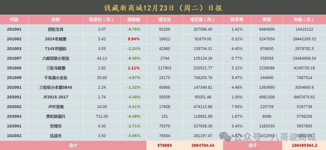 🌈钱藏新商城“商城模式的牛市初现端倪,新高后面还有新高”🔥“商城模式的牛市初现端倪”可能会有不少人会问我凭什么这样说呢?拿什么样的标准去判断呢?本人近段时间仔细观察,得出以下三点供大家参考。🔥第一,钱藏商城的交易总量:从前段时间的100多W到目前的300-400W,交易量能温和放大,个品成交活跃。🔥第二,场内外资金:场外增量资金跑步入场,场内资金也出现了回流的积极迹象。🔥第三,结构性普涨行情主导:十二个商品普遍上涨,大部分个品创历史新高,结构性机会突出,赚钱效应非常明显。🔥现在的行情演绎,本人认为确实是牛市初期行情中的一种常见现象,意味着在牛市的不同阶段,在突破前期高点后,往往会继续创出新的高点。对于创出新高后的短暂回调蓄力,我们更应该理性去面对,切记勿追涨杀跌。团购方的“志在高远”,勇于解放前期的套牢,是超越短期博弈、着眼于“十年一遇的邮币卡”上涨趋势和资产长期价值的更高维度视角,值得我们大家去深思。❤️免责声明:本文仅代表个人思路,不构成任何投资建议!👨🚒作者:不甘平凡人2025年12月23号