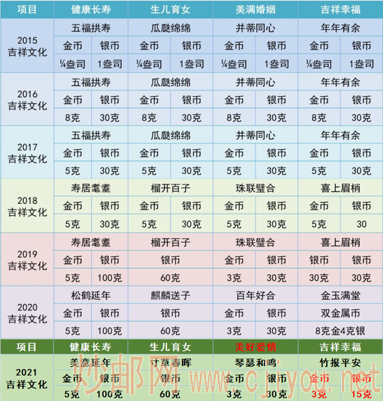 在今年的吉祥文化项目中,首次出现了3克金币+15克银币的组合,这在以往的吉祥文化系列中,从未有过!