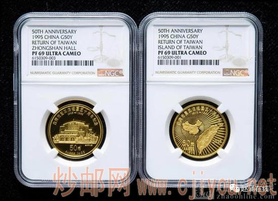 1995年台湾光复回归祖国50周年1/2盎司精制金币二枚一套