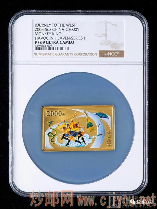 2003年中国古典文学名著《西游记》第(1)组-大闹天宫5盎司长方形精制彩金币一枚