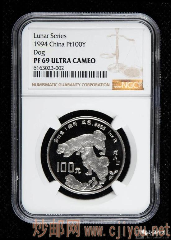 1994年甲戌狗年生肖1盎司精制铂币一枚
