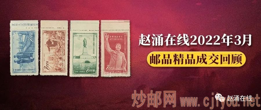 随着《传邮万里-2022邮品季度精品专场(一)》的顺利结束,赵涌在线3月邮品竞拍也告一段落。3月的邮品成交可谓是百花齐放,捷报频传。仅以本次季度精品专场为例,总成交额688万,成交量506件,成交率99%!各邮品板块均有多个品种创历史新高,且价格远超2011年行情巅峰时期的最高成交价,上涨之势不可阻挡!在此,我们对3月邮品精品成交情况进行回顾,供各位藏家参考。