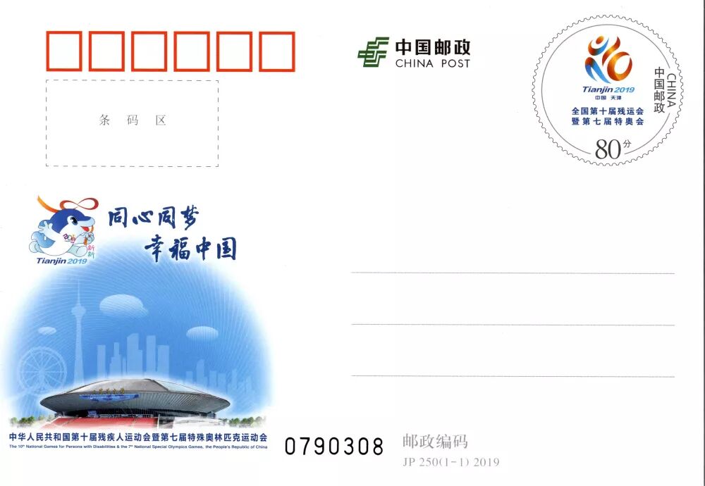 中国邮政定于2019年8月25日发行《中华人民共和国第十届残疾人运动会暨第七届特殊奥林匹克运动会》纪念邮资明信片1套1枚。详情如下: