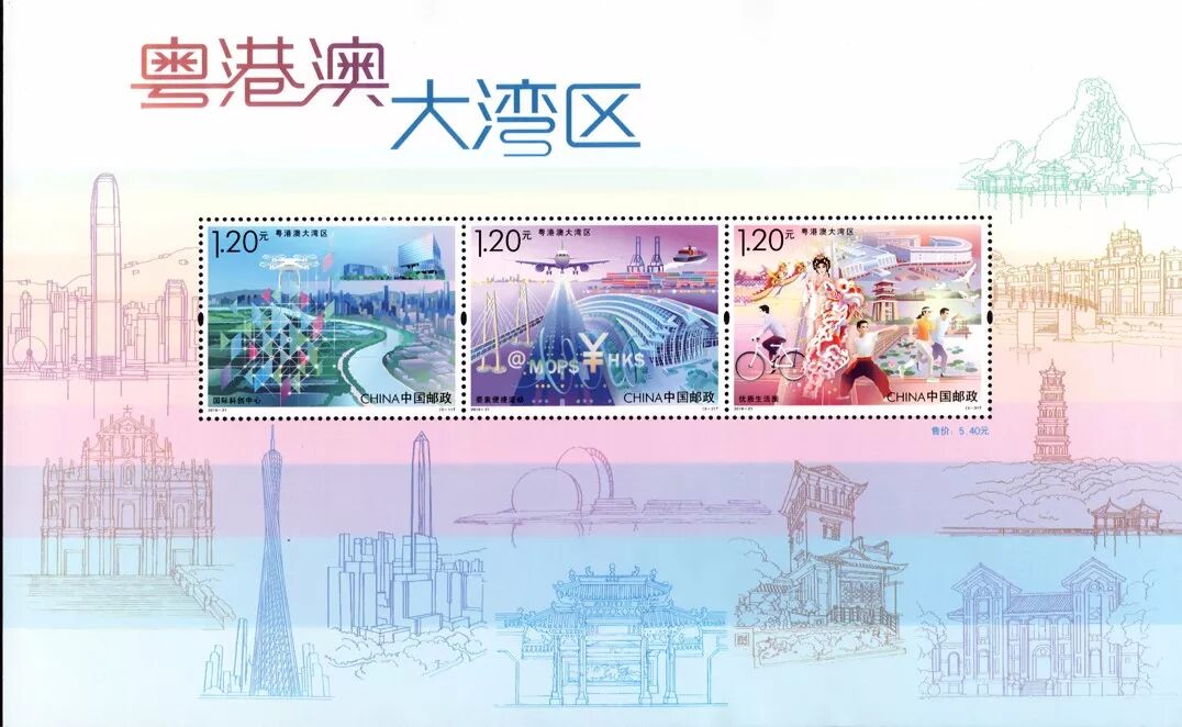 中国邮政定于2019年9月26日发行《粤港澳大湾区》特种邮票1套3枚,小全张1枚。详情如下: